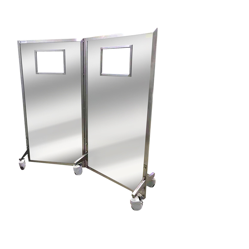 铅屏风侧面可加上下滑动式辅助侧屏,移动式铅屏风带刹车装置,铅含量分为0.5mmpb ,1mmpb ,1.5mmpb ,2mmpb 等,可在铅屏风上装铅玻璃观察窗,常见的铅玻璃观察窗尺寸为200mm*300mm