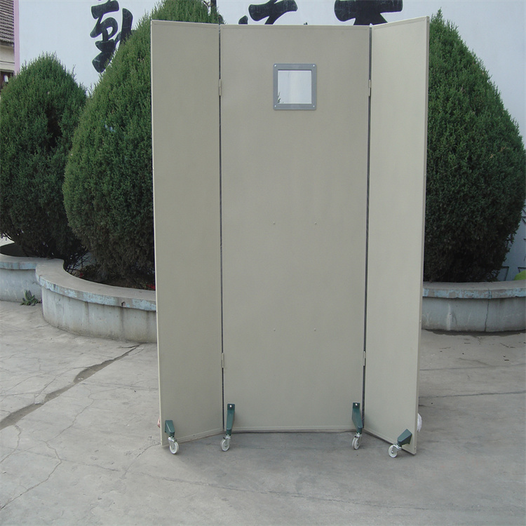 高防护性能:介入科铅屏风采用高纯度的铅材料制成,具有高效的防辐射性能。它可以有效地吸收和阻挡X射线、γ射线等高能辐射,保护医护人员和患者的安全。